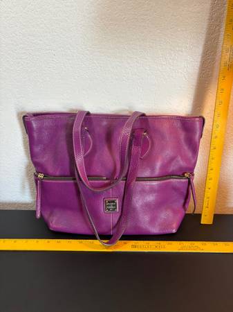 $50 Dooney & Bourke purple monogram satchel with matching wristlet.